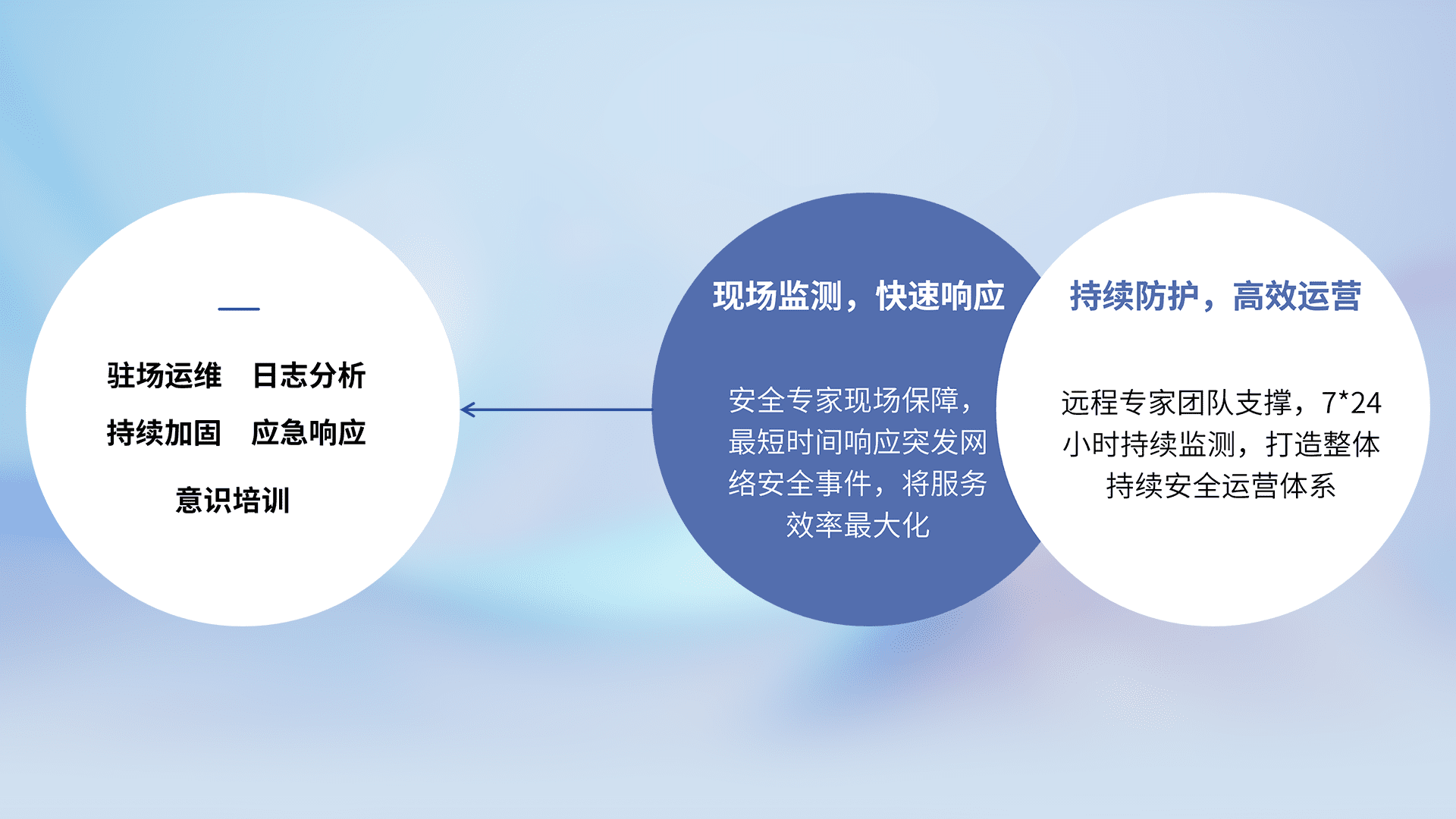 针对客户行业特性,,,,提供专属的一站式安全管理服务,,,,帮助客户全面感知网络空间威胁,,,,通过安全专家的线上、、、线下防护支持,,,实现风险闭环,,,,将安全保障常态化,,为客户打造常态化安全运维运营服务。。。。